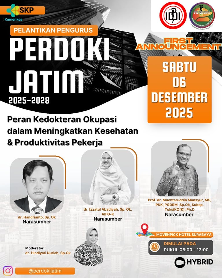 Kegiatan ini merupakan momentum penting bagi PERDOKI Jawa Timur dalam melanjutkan estafet kepemimpinan periode 2025โ2028, sekaligus menyelenggarakan Workshop Kedokteran Okupasi dengan tema โPeran Kedokteran Okupasi dalam Meningkatkan Kesehatan dan Produktivitas Pekerjaโ